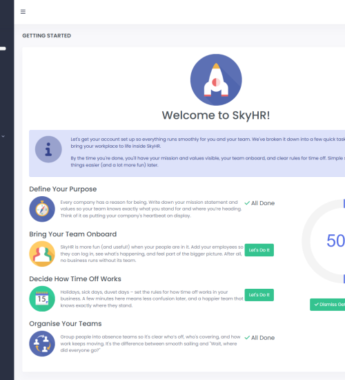 SkyHR provides support through email and you can also refer to our in app guides for quick answers to common questions.